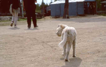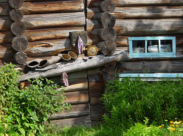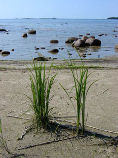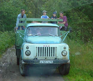 Laatokan rantaa. Oikealla Bussimme vastaantulijat metsätiellä